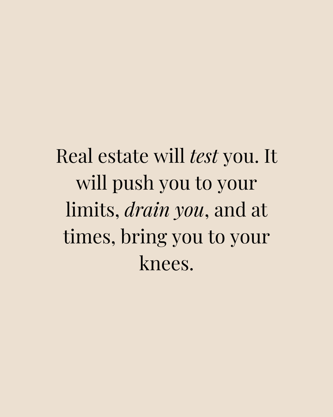Real estate will test you. It will push you to your limits, drain you, and at times, bring you to your knees.